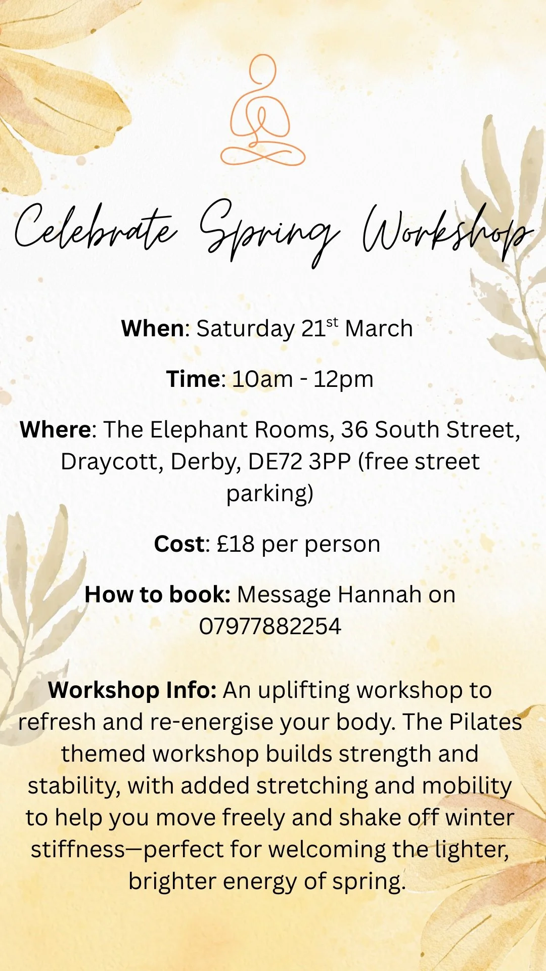 An uplifting workshop to refresh and re-energise your body. The Pilates themed workshop builds strength and stability, with added stretching and mobility to help you move freely and shake off winter stiffness – perfect for welcoming the lighter, brighter energy of Spring.