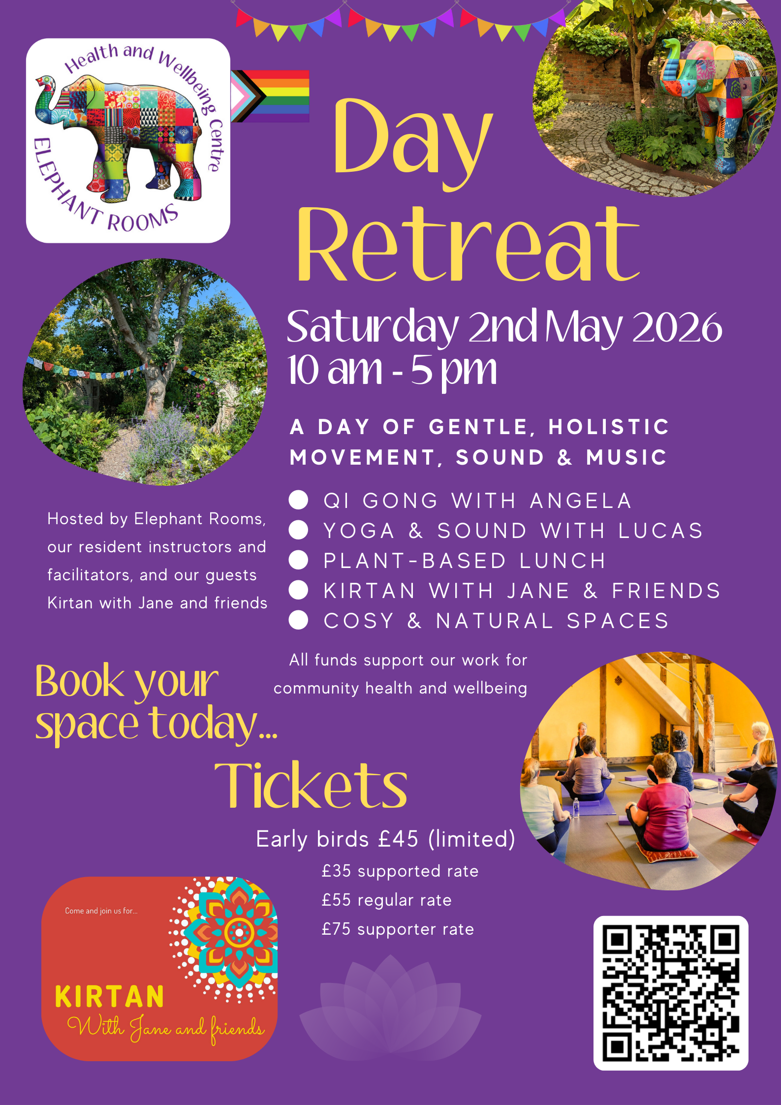 Hosted by Elephant Rooms and our resident facilitators, with nourishing plant-based food and refreshments and special guests Kirtan with Jane and friends.